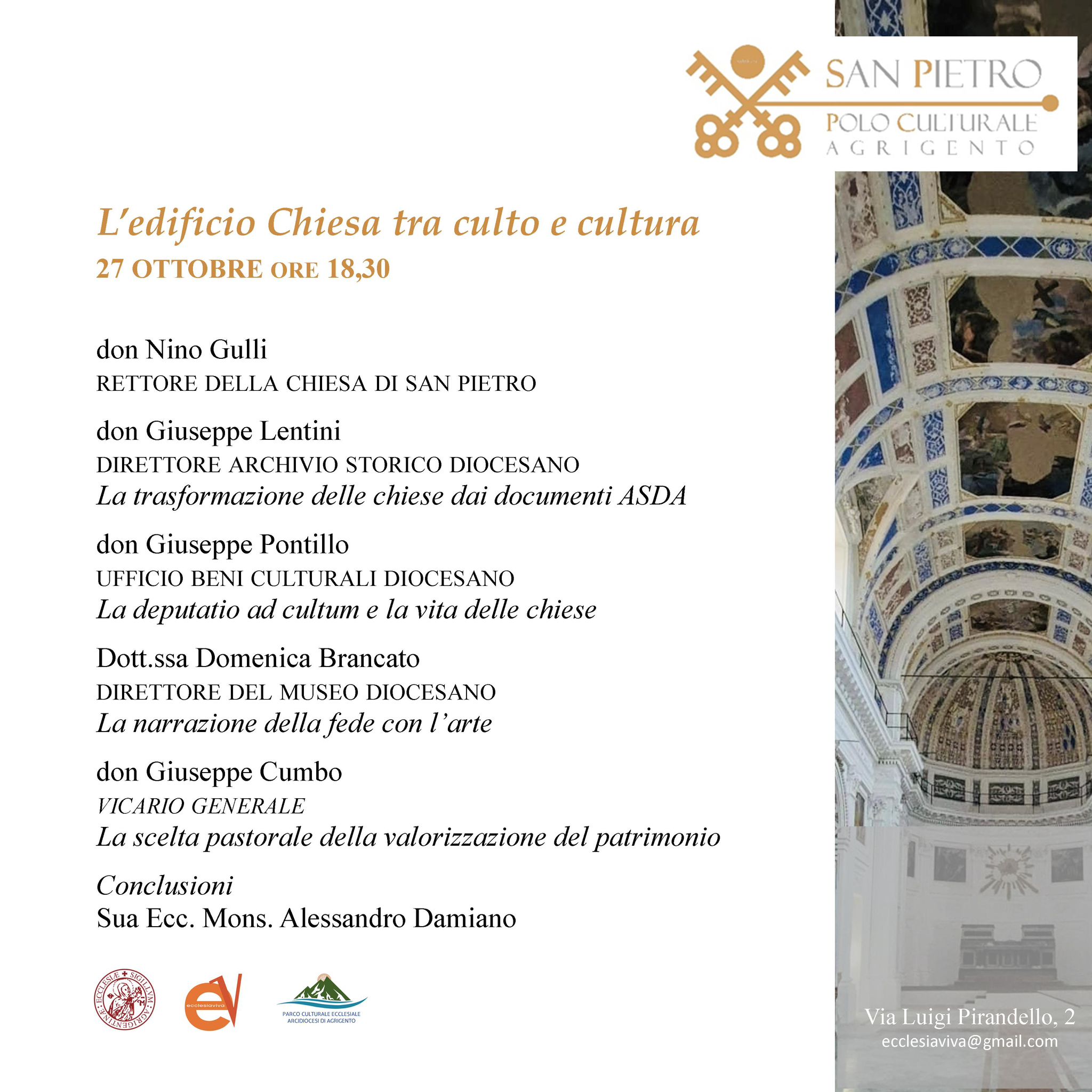 * Breve intervento tenuto il 27 ottobre 2025 dal Direttore presso la Chiesa di San Pietro di Agrigento in occasione della presentazione dei Poli Culturali della Diocesi, dal titolo “L’Edificio Chiesa tra culto e cultura”.